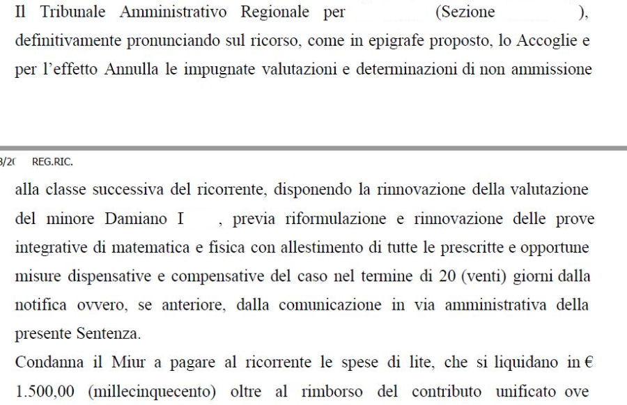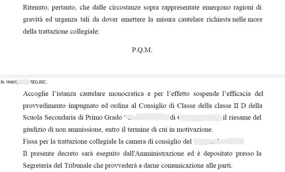 Di seguito elenchiamo alcuni dei provvedimenti giudiziari da noi ottenuti.